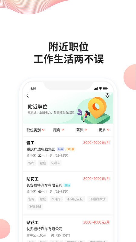 *根据用户当前的地理位置,自动在线搜索自身的工作岗位。